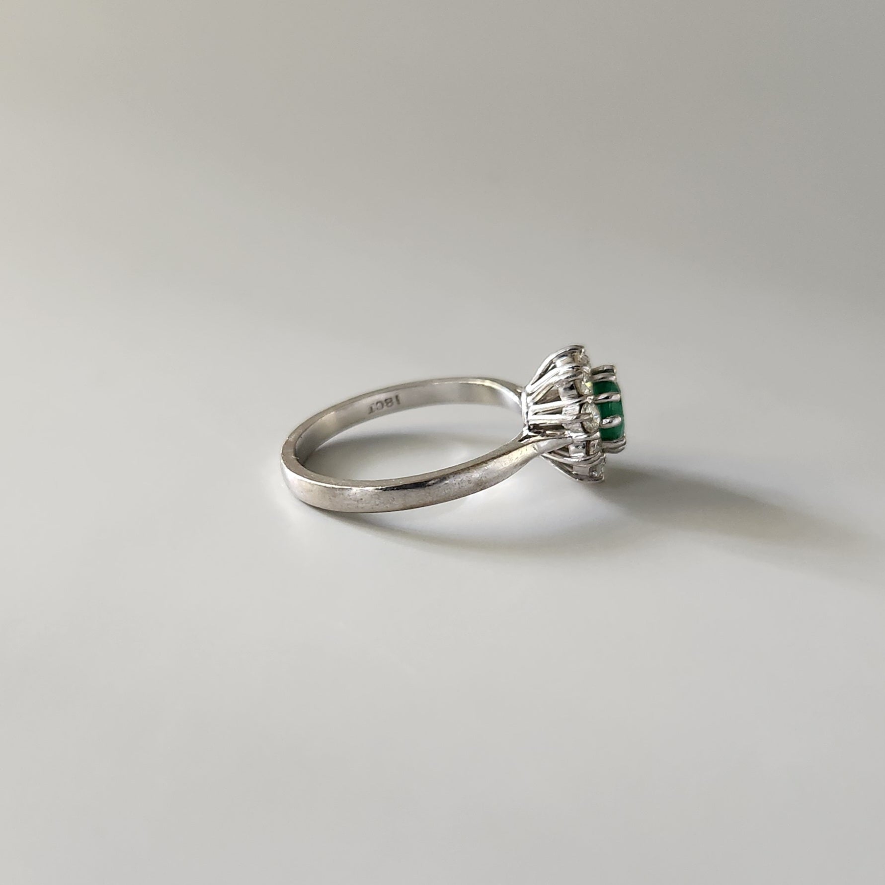 18ct White Gold Emerald & Diamond Cluster Ring