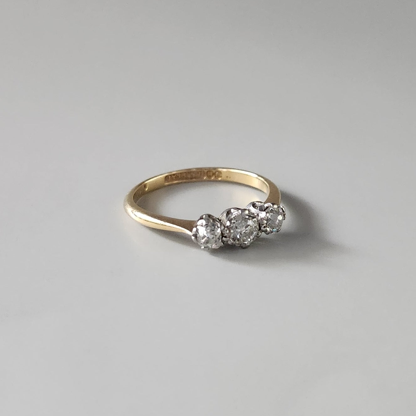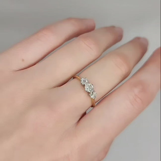 18ct Yellow Gold Old Cut Diamond Trilogy Ring