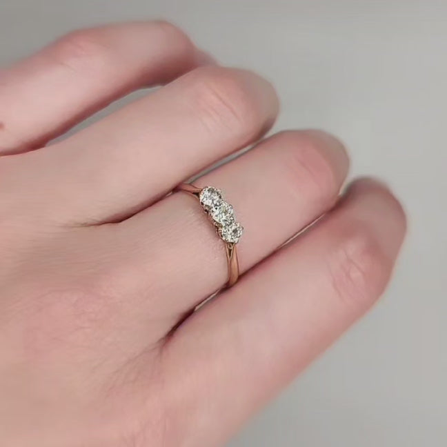 18ct Yellow Gold Old Cut Diamond Trilogy Ring