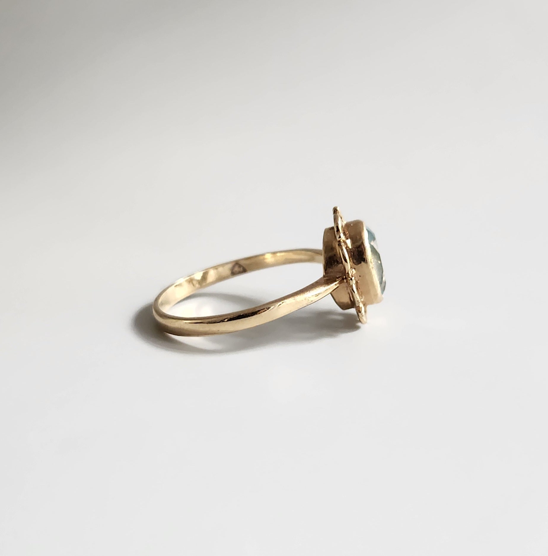 This ornate detailing showcases the artistry of traditional jewellery making, featuring fine, swirling wires of gold that create a lace-like, ethereal halo effect. The filigree not only enhances the visual size of the head of the ring but also adds a layer of vintage charm and sophisticated texture.