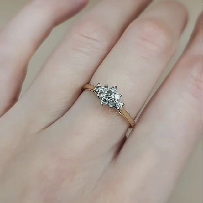 This cluster ring features 9 x 2mm diameter sparkly diamonds (0.27ct) in a diamond formation.