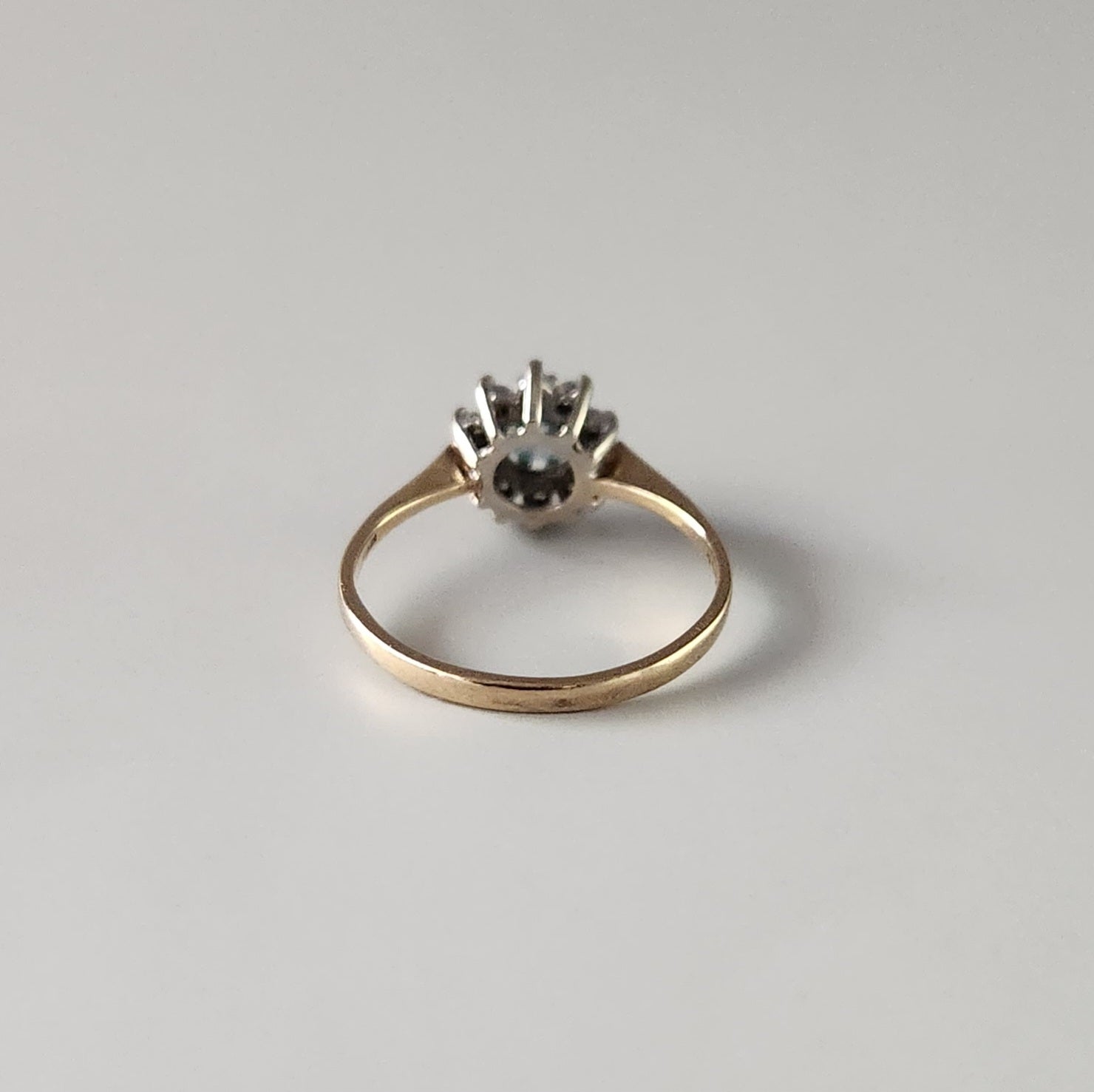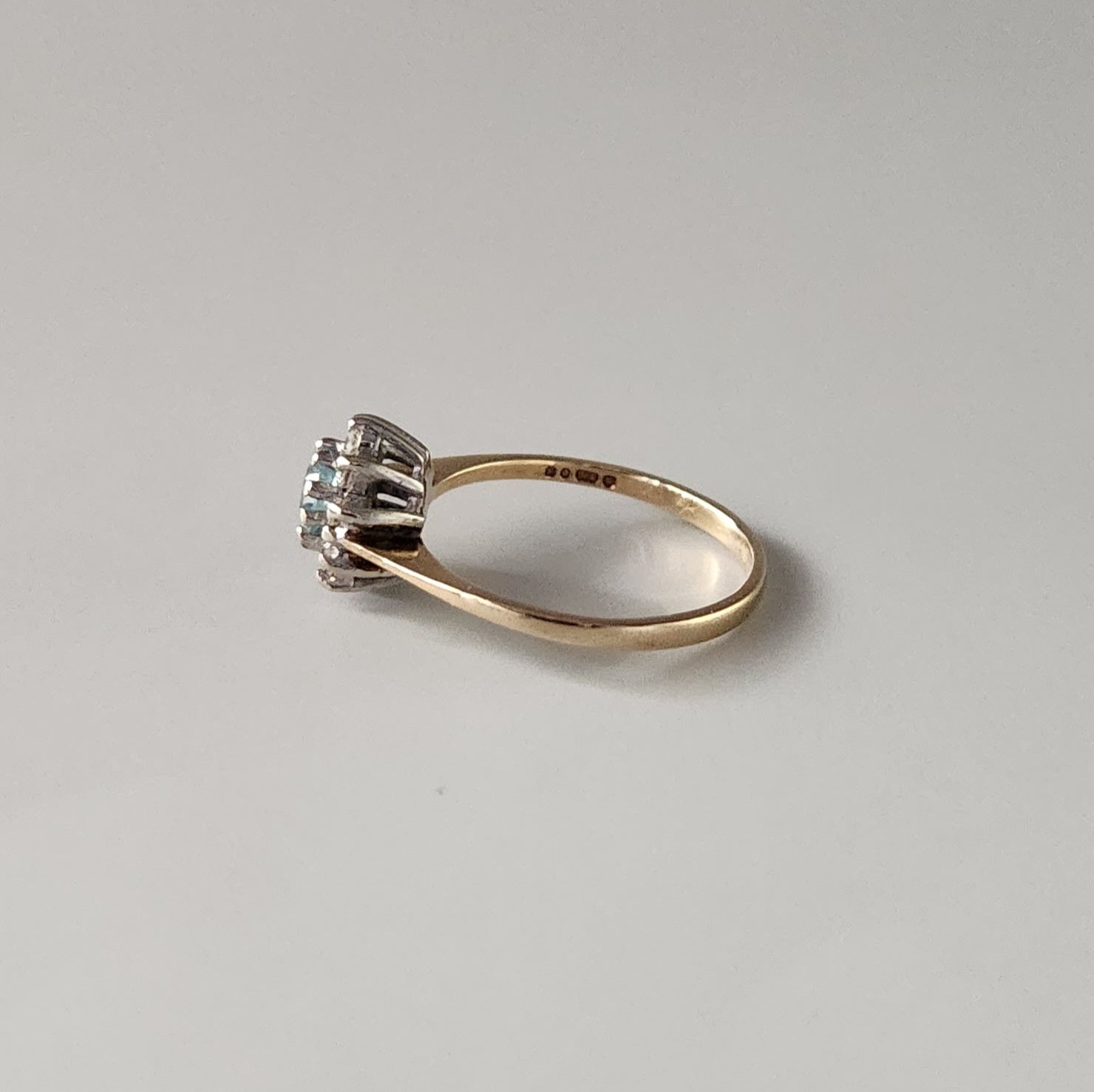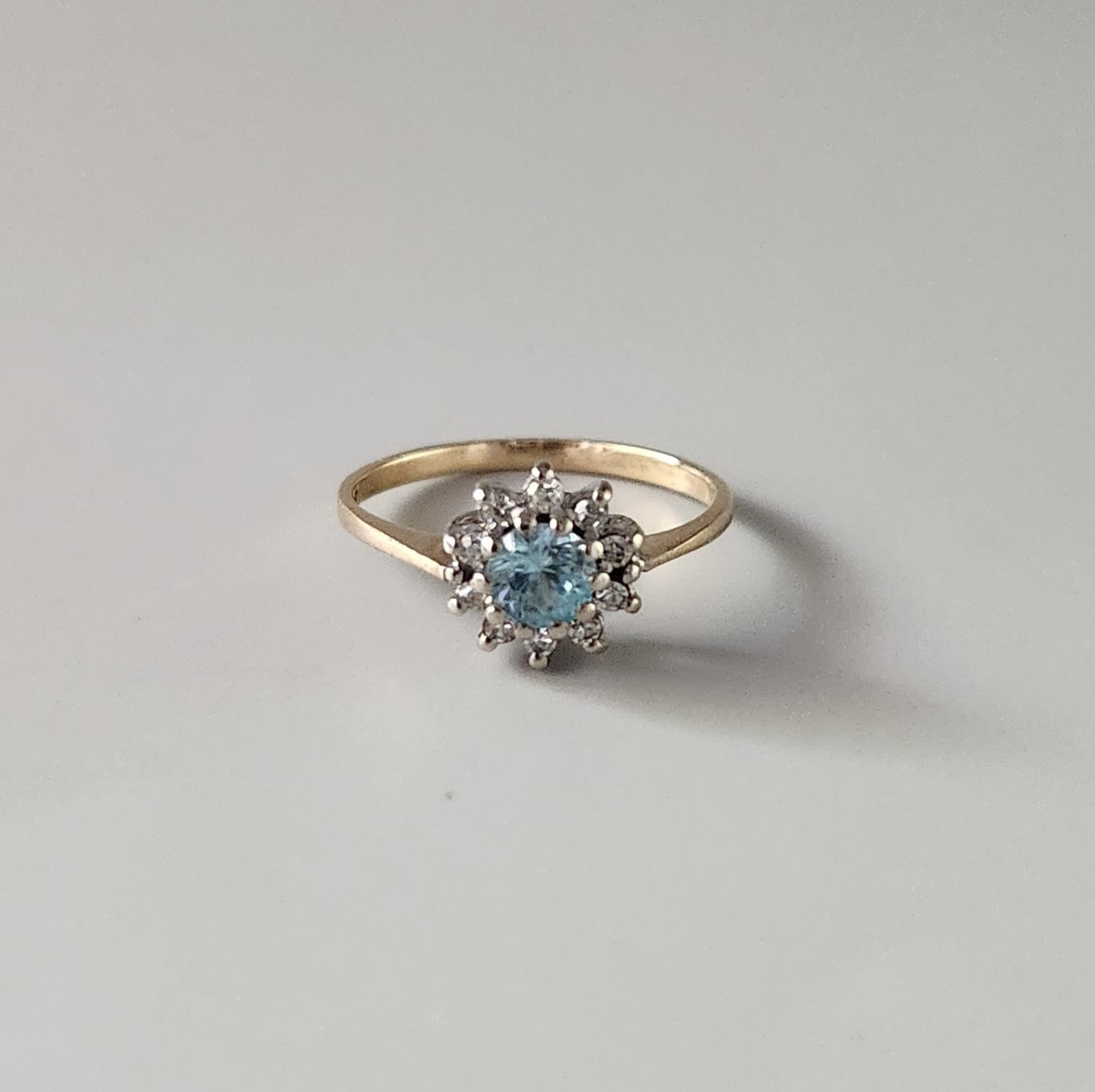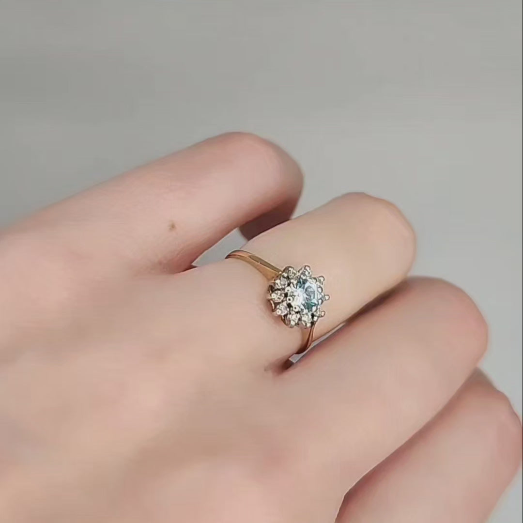 9ct Yellow Gold Pale Blue Topaz & Diamond Cluster Ring
